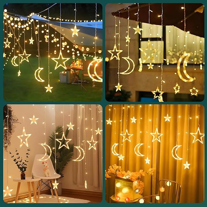 ✔️ زاوية التصميم الفريد: نجوم وأقمار متدلية بشكل انسيابي تعطي منظراً فخماً وجميلاً على الستائر أو الجدران.