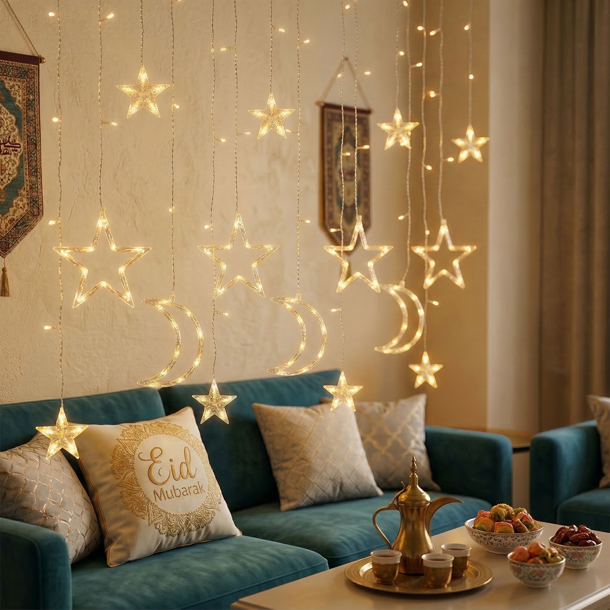 🌙 عيد مبارك.. اجعل منزلك يشع بالبهجة والسرور مع قمر مول. اطلب إضاءة النجوم والأهلة الآن وجهز بيتك لاستقبال أجمل اللحظات!