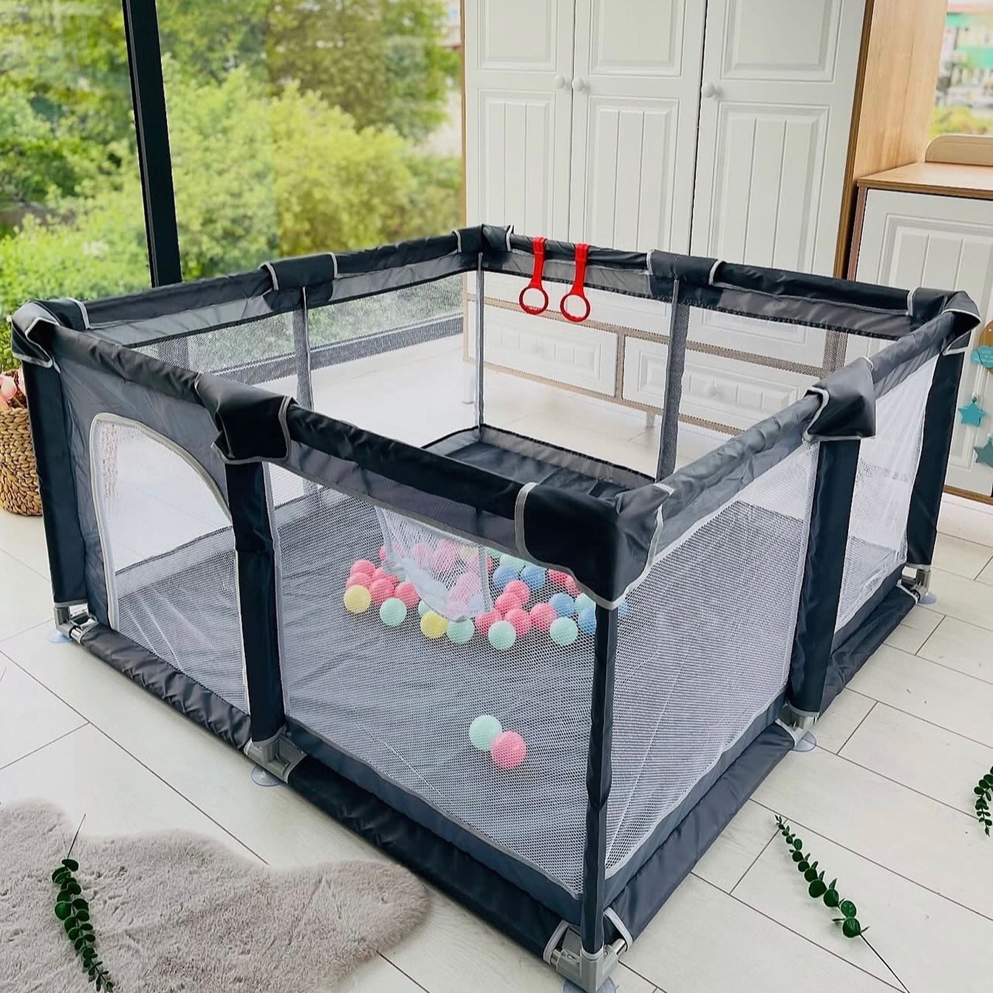 ✔️ رؤية كاملة وتهوية: شبك جانبي عالي الجودة يسمح بمرور الهواء ويخليك تراقبين طفلك من كل الزوايا وأنتِ مرتاحة. ✔️ أمان مضاعف: باب بسحاب خارجي يفتح من الخارج فقط، لضمان بقاء طفلك داخل المنطقة الآمنة ومنع خروجه بمفرده.